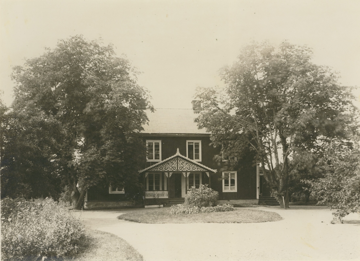 Huvudbyggningen mot gårdsplanen.Tvåvånings hus, byggt 1868. Panelat och rödmålat.