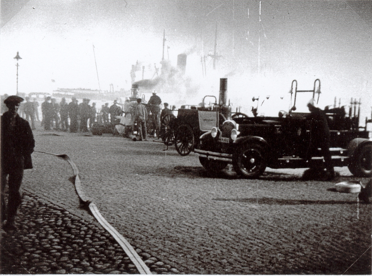 Brandbilar vid Ångkvarnsbranden 6/7 1935.