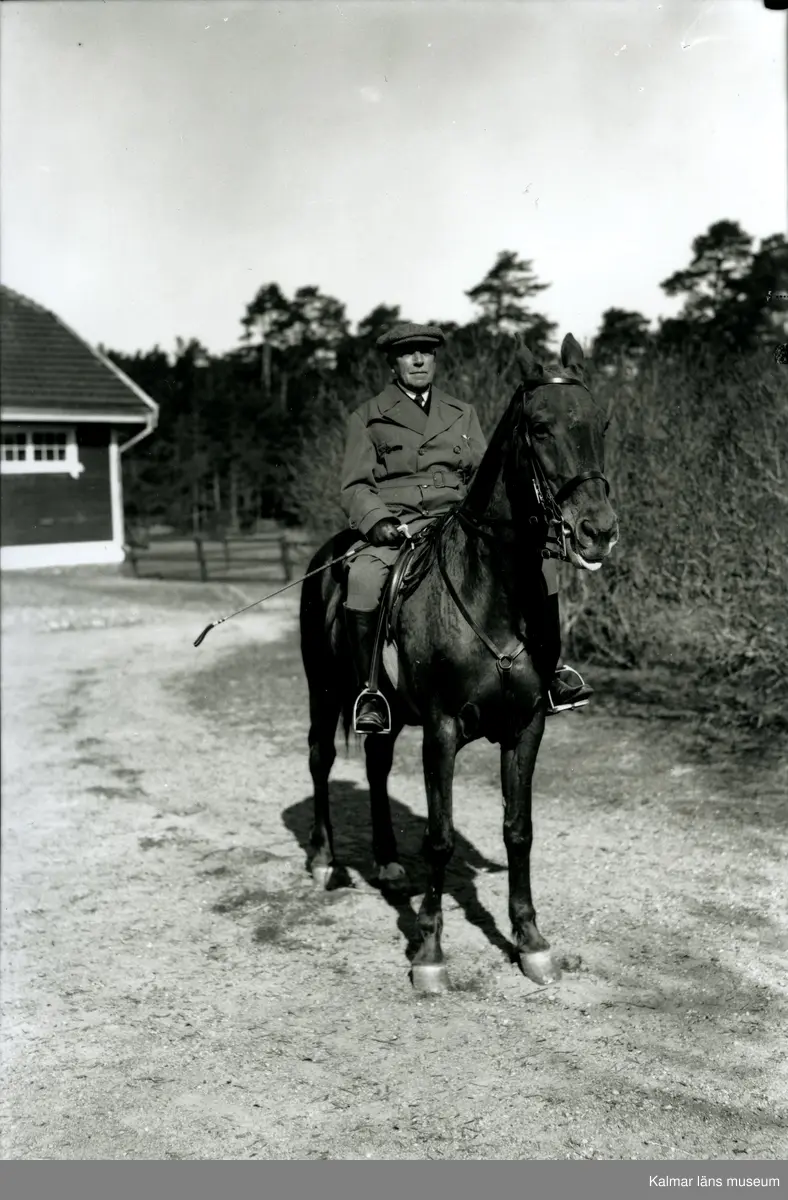 John Jeansson, konsul VD. Född 21/8 1865, död 1953. Svensknabben på sin dagliga ridtur.