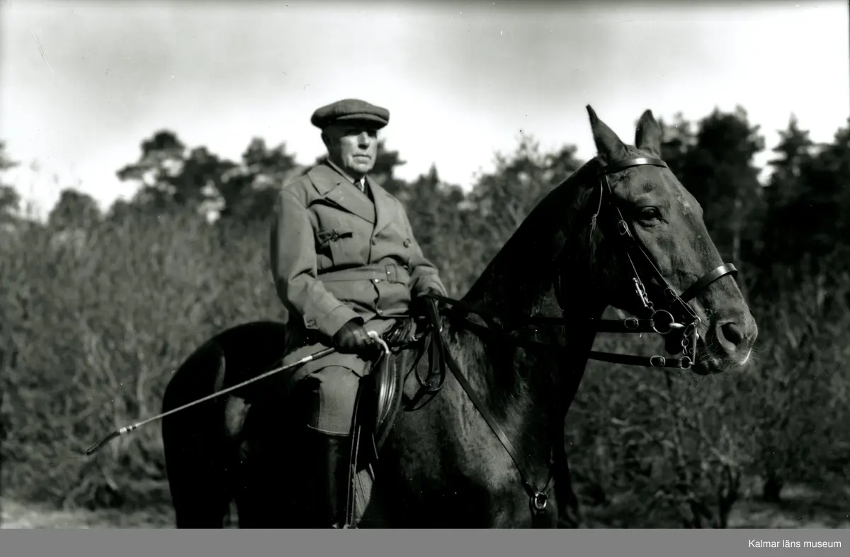 John Jeansson, konsul VD. Född 21/8 1865, död 1953. John red till han trillade av hästen i 82-års åldern. Hästen heter Palna.