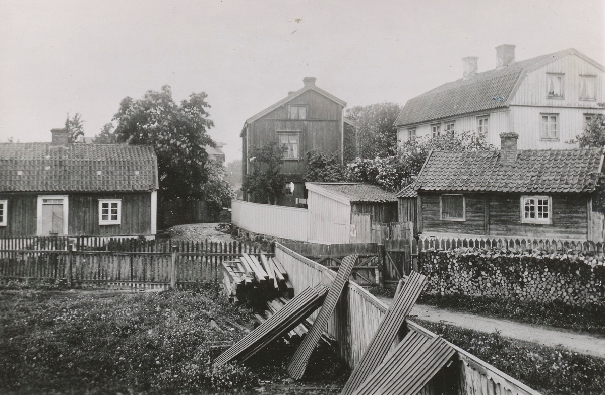 Bild från Pataholm omkring 1890. Huset längst till vänster är senare rivet. Det stora, vita huset till höger i bild har tillhört kapten Per Petersson, enligt Oscar Hullgren "en riktig sjörövartyp".