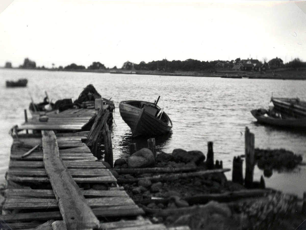 Gamla fiskehamnen i lågvatten. Längst upp till vänster lotsplatsen.