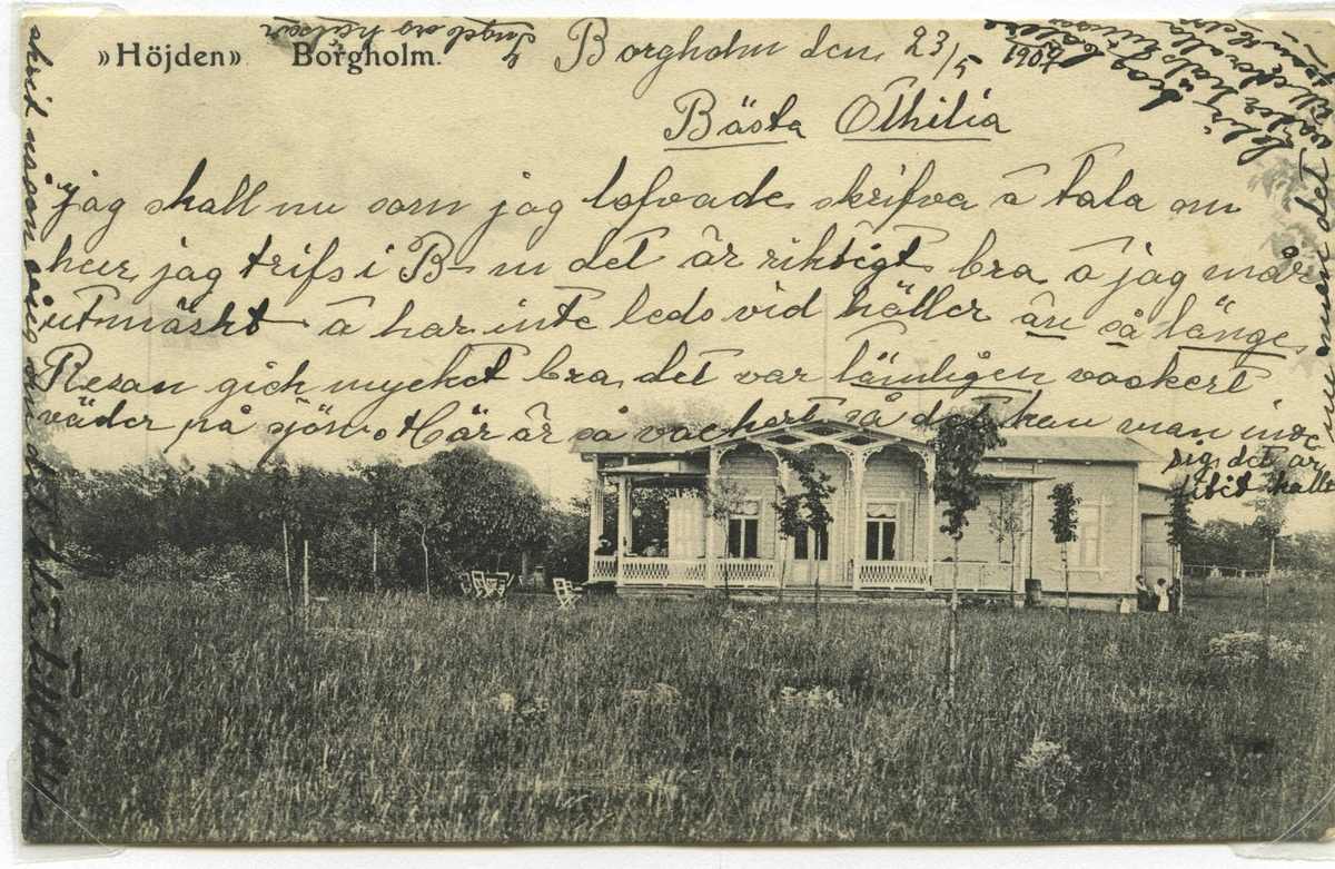 Vykort med restaurang Höjden vid Borgholms slottsruin.