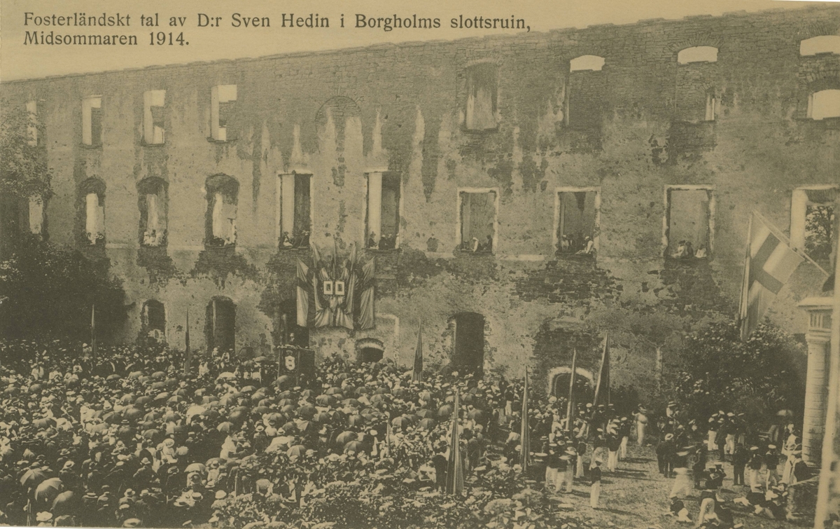 Fosterländskt tal av doktor Sven Hedin i Borgholms slottsruin, midsommaren 1914.