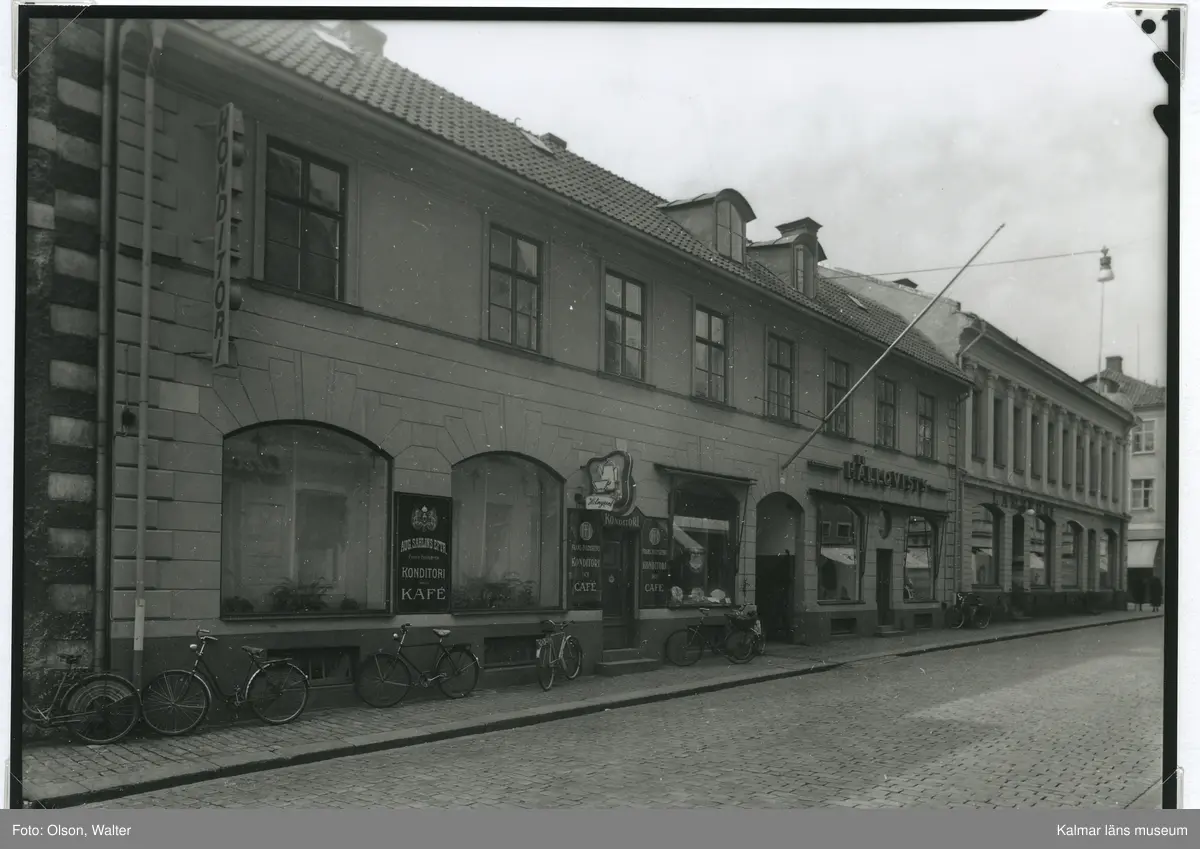 Holmgrens konditori. Fastigheten ägdes av först Frans, sedan Sven Holmgren. De bodde i konditorsvåningen på andra våningen.