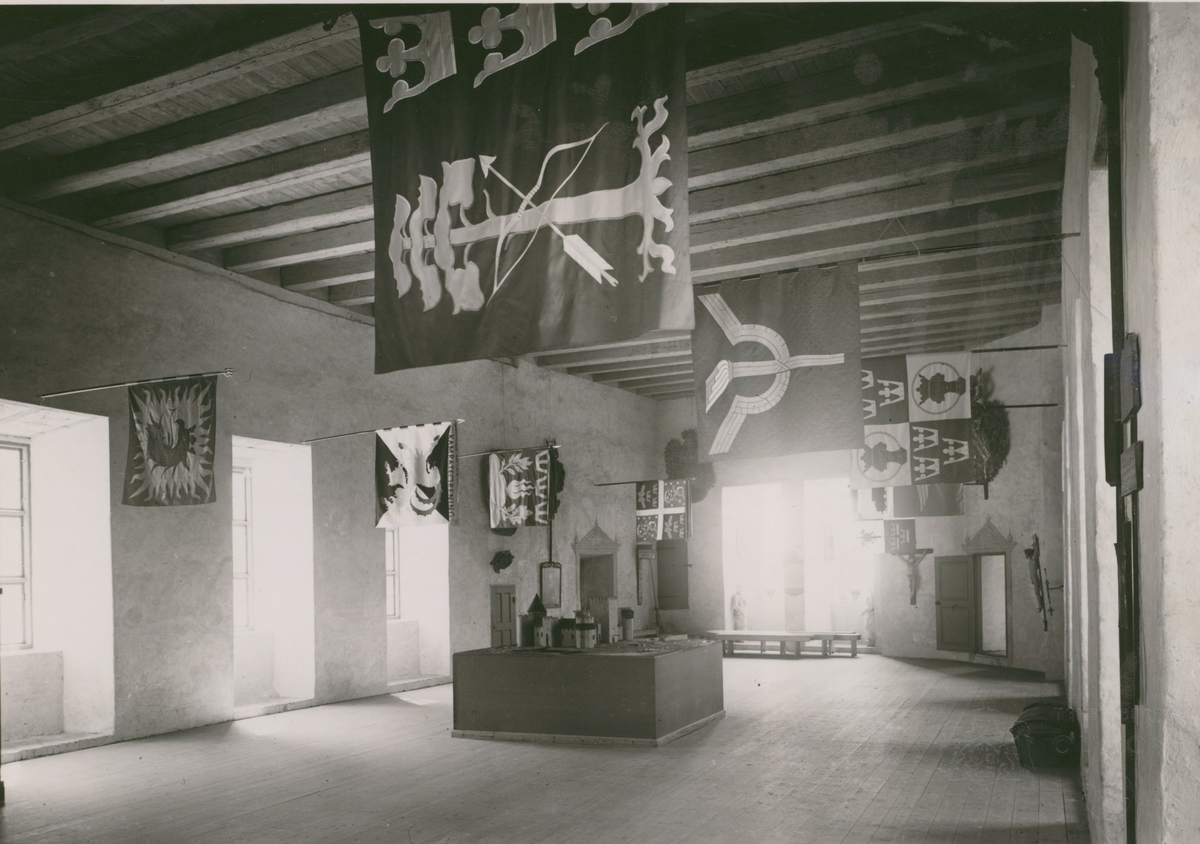 Kalmar slott, Gröna salen, rum 87. Konstnären Einar J:son Kedjas separatutställning på Kalmar slott 1-13 augusti 1942. Fanorna.