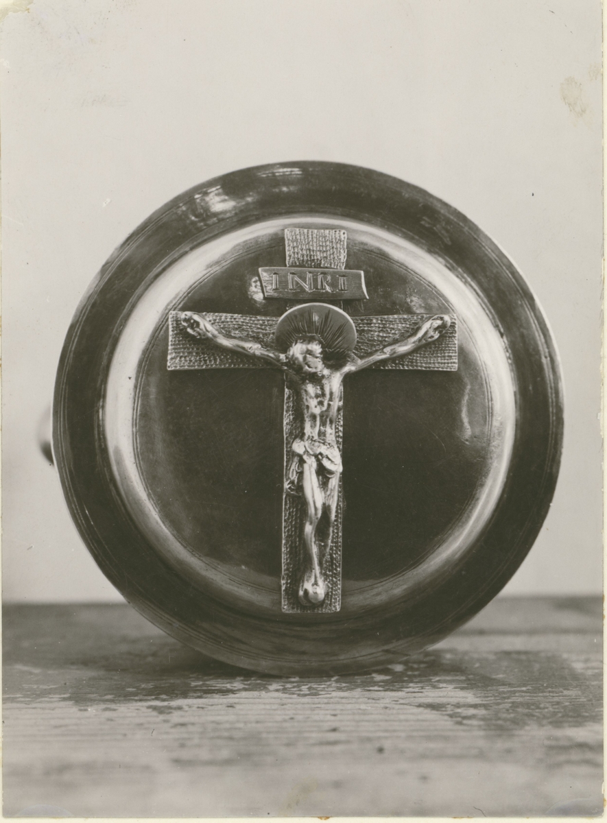 Patén i helförgyllt silver. Ur slottskyrkans altarsilver,förvaras i domkyrkan. Kalken i uppsättningen är daterad 1685 och hela uppsättningen är samtida med denna.