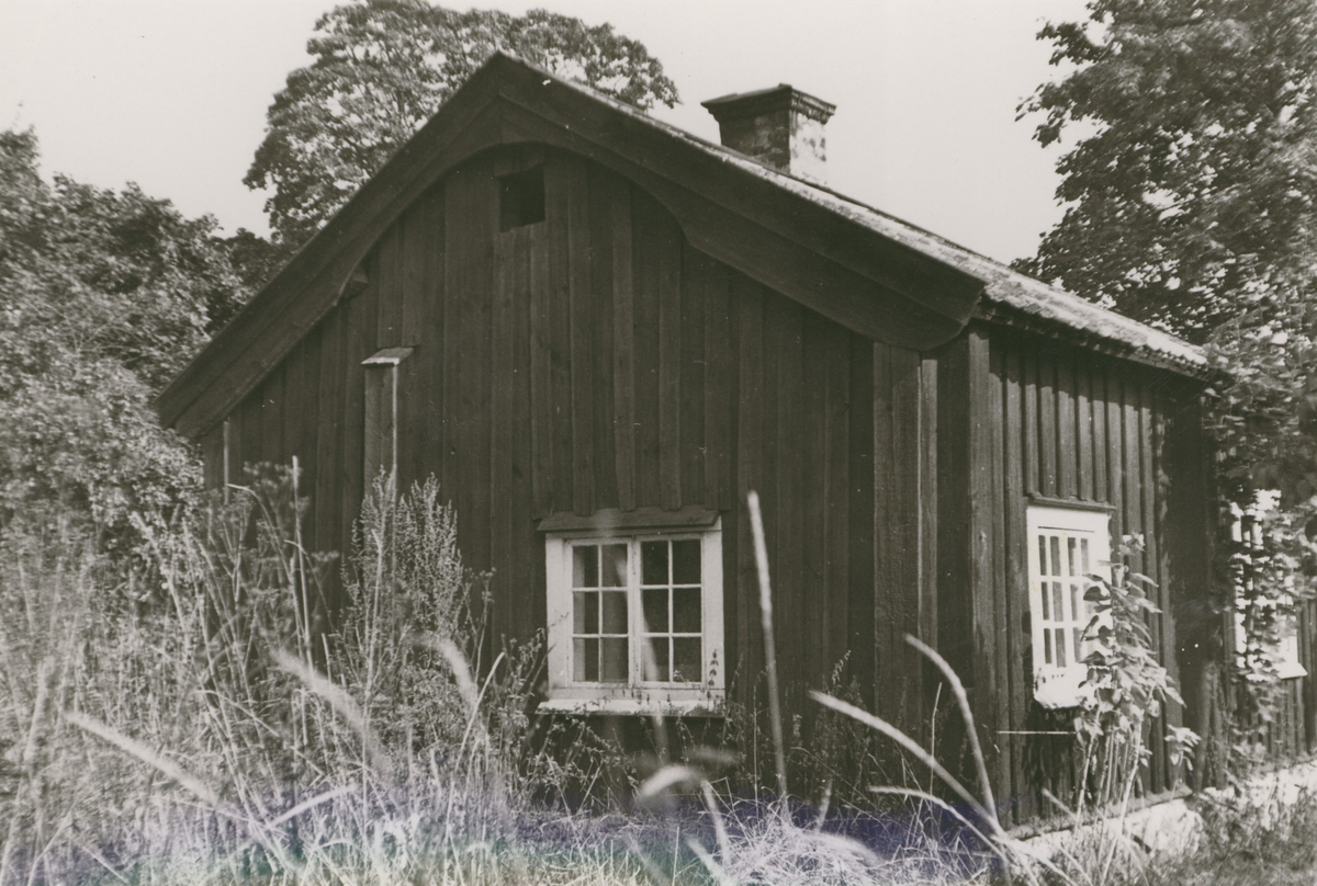 Stuga bakom manbyggnaden på Grävsättra gård. Knuttimrad, klädd med panel av stående bräder. Tak av enkupigt tegel. Rödmålad med vita dörr och fönsterfoder. Observera vindskidorna