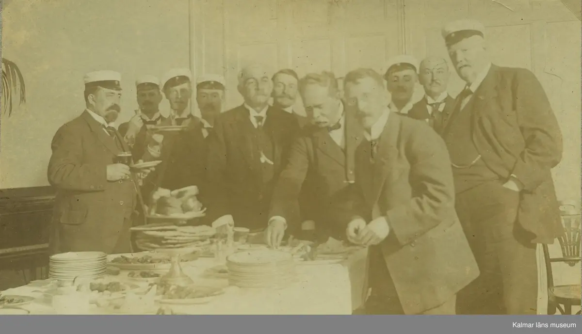Läroverket i Kalmar, studentjubileum 1940. Närvarande: 1. Notarie Sellin 2. Tor Holmström 3. Tandläkare Haglund 4. En lärare 5. Doktor Ringberg, rektor lind, Anrep-Nordin, Stadsfogde Carlsson, Modigh.