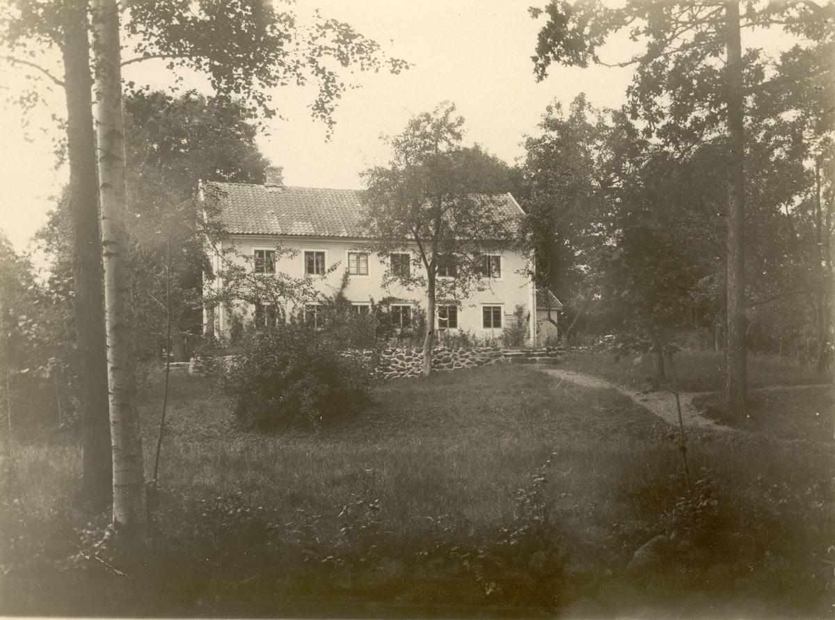 "Huvudbyggningen: trädgårdssidan. Stenterasse modern."