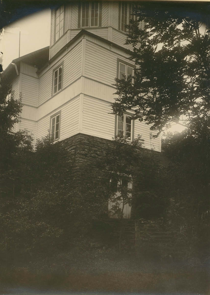 Huvudbyggnaden på Galltorps säteri sedd från trädgården.