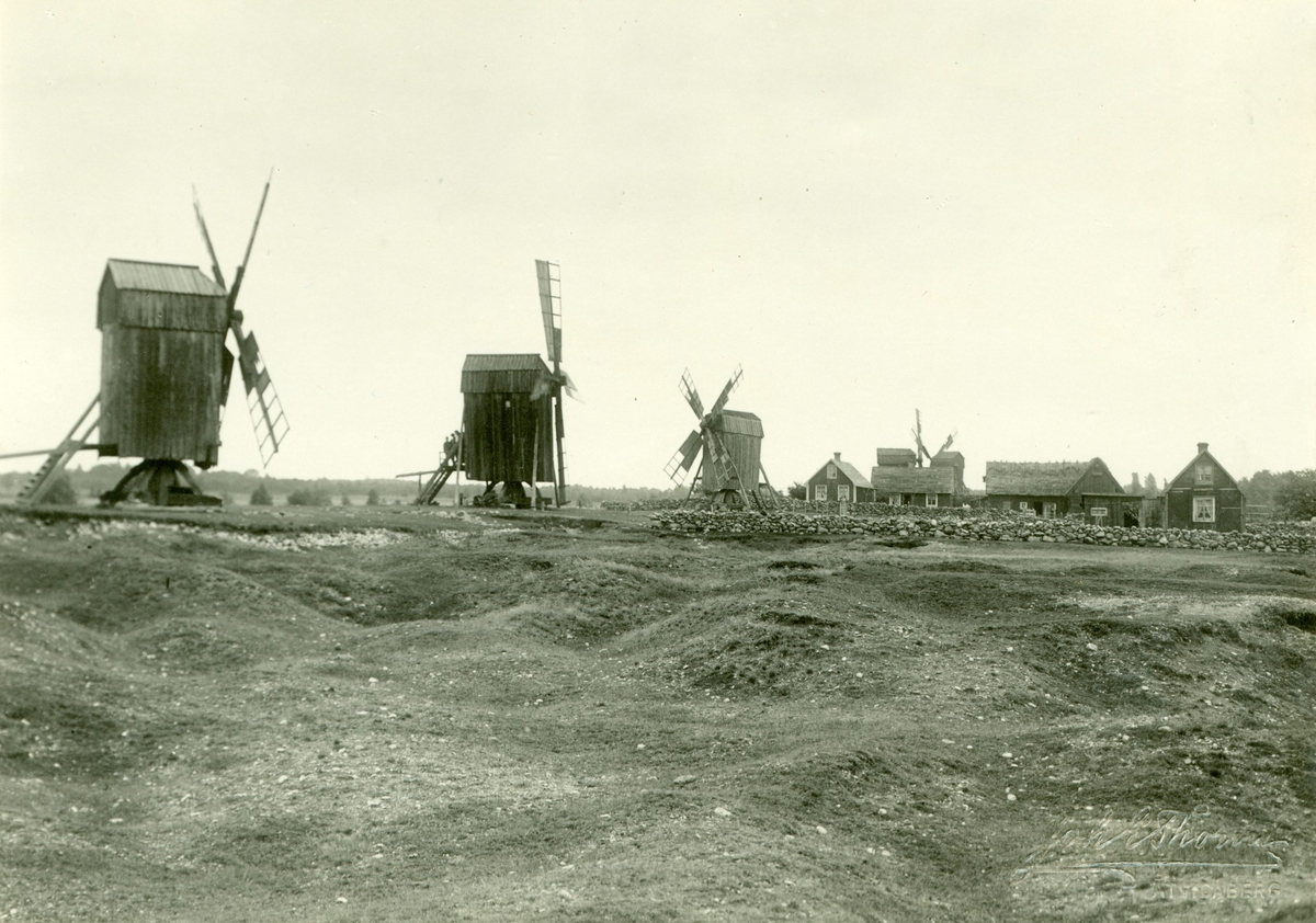 Väderkvarnar av typen stubbkvarn i Tjusby på Öland.