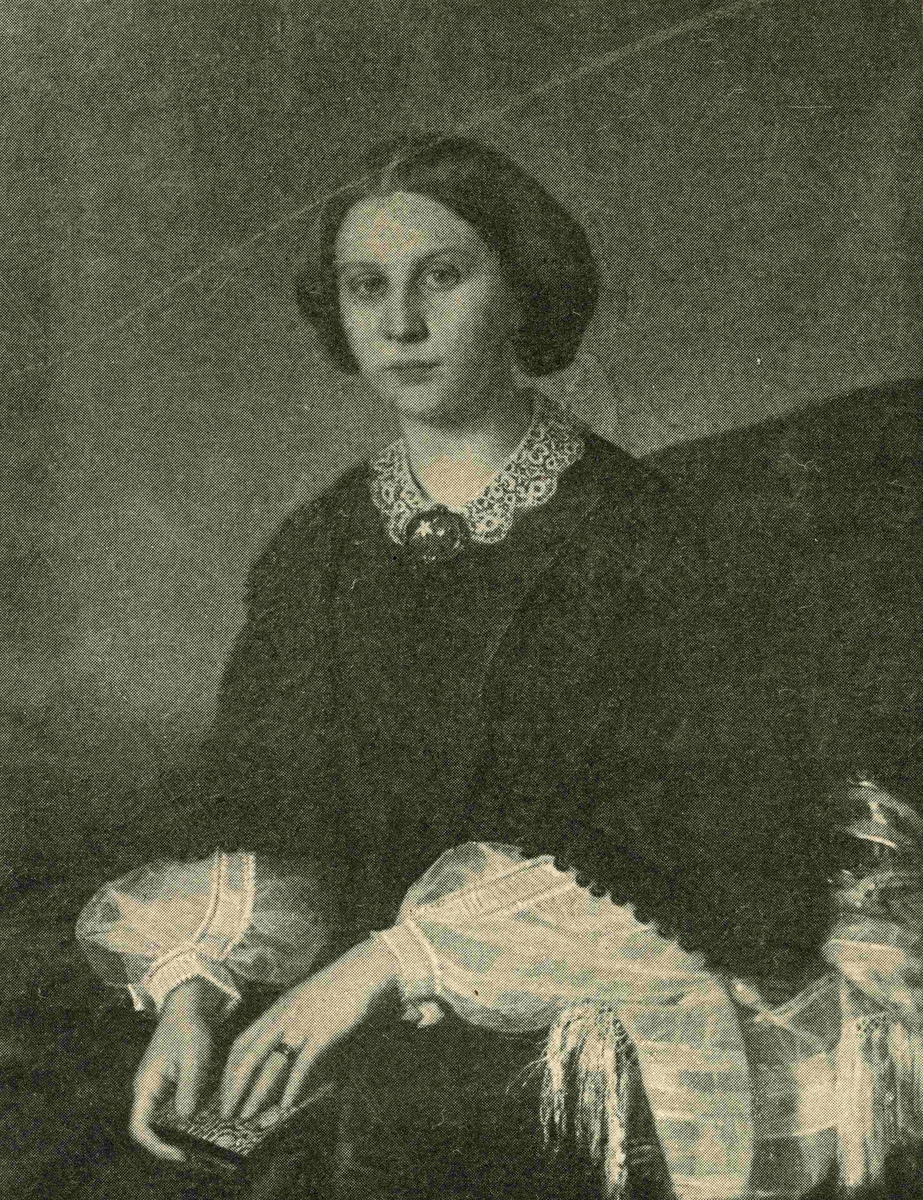 Porträtt av fru Julie af Geijerstam, född friherrinna Armfelt. Oljemålning 1860-talets början (Troili). Fru Clara Borg, Malmö.