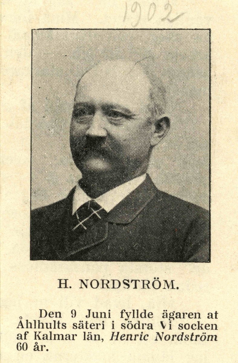 Henric Nordström, bruksägare, född 1842. "Den 9 Juni fyllde ägaren at Åhlhults säteri i södra Vi socken af Kalmar län, Henric Nordström 60 år."