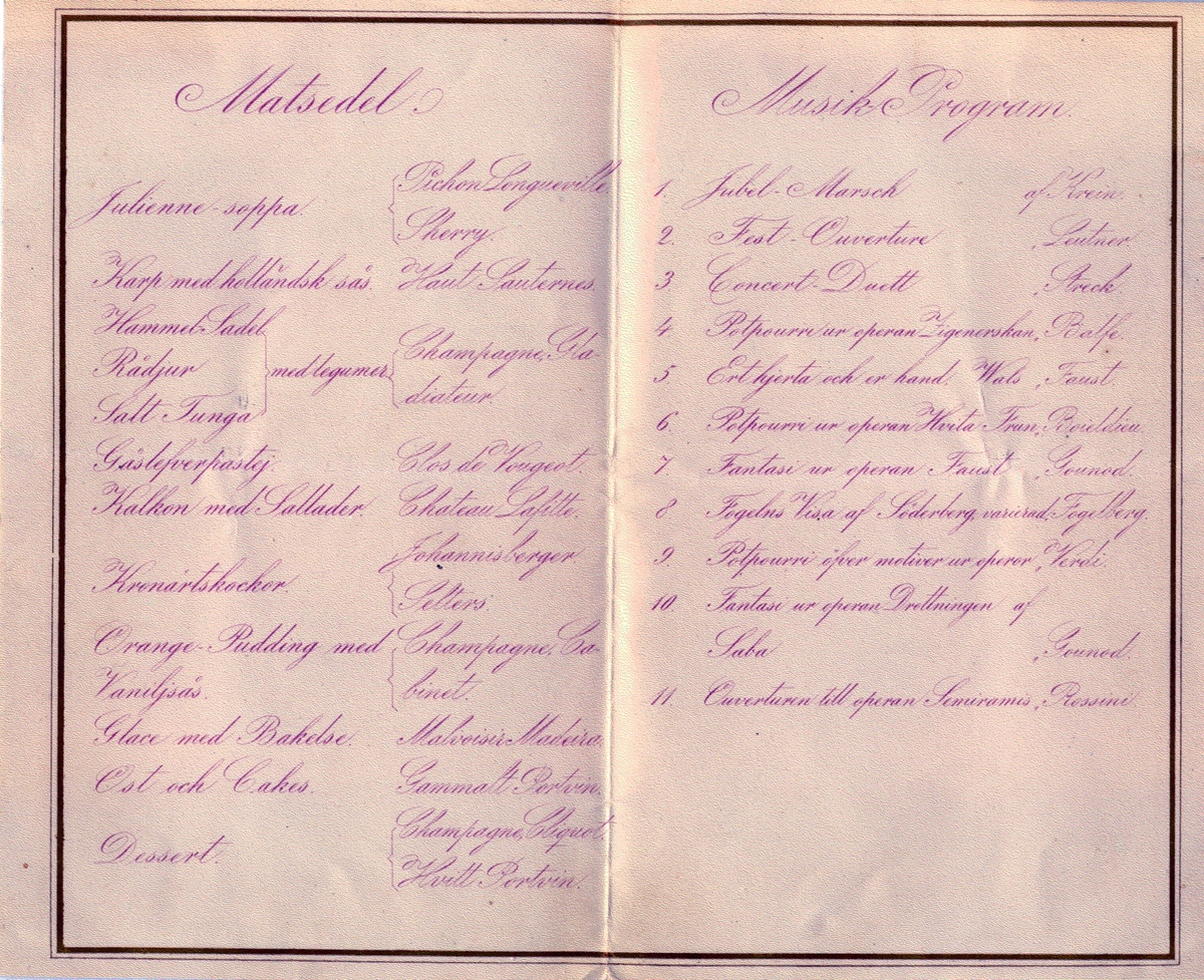 Dinér på Kalmar slott den 8 Augusti 1874.