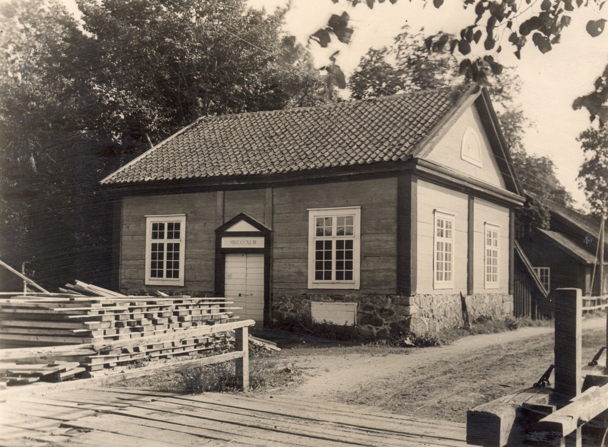 Kvarnen i skiftesverk med gula skift, röda stolpar och lister. Port i vitt och rött med årtalet 1843.