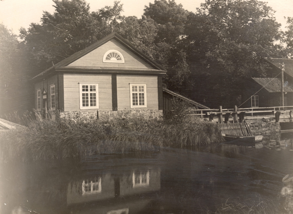 Kvarnen i skiftesverk med gula skift, röda stolpar och lister. Port i vitt och rött med årtalet 1843.