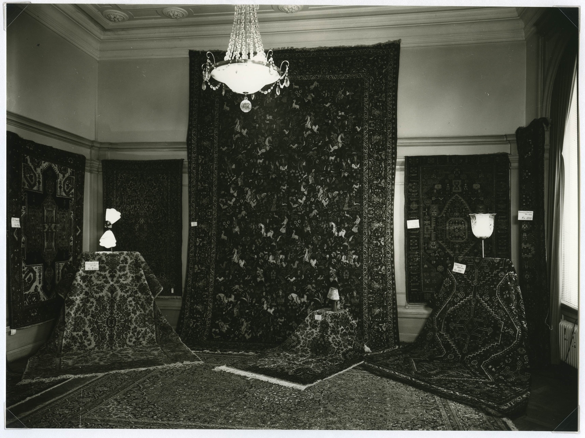Visning av orientaliska mattor. Fotot beställt av Palmette mattfirma, Stockholm.