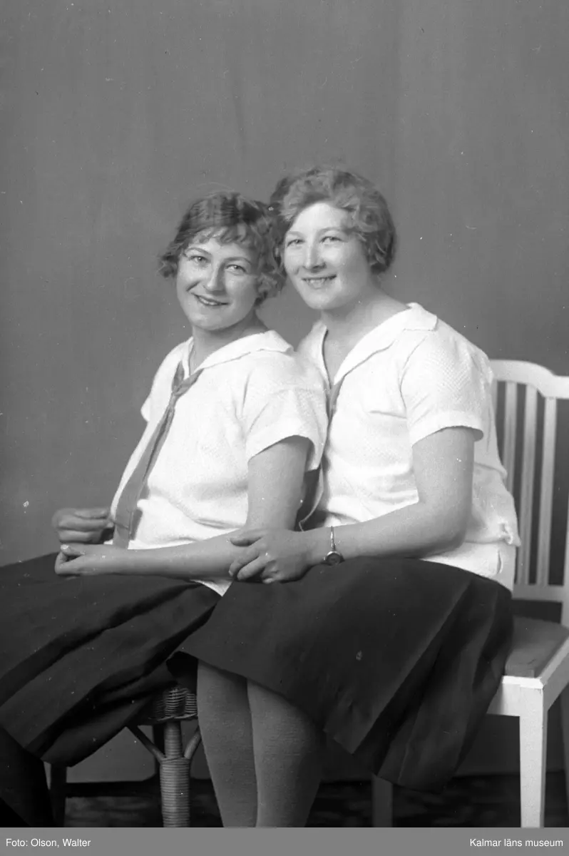 Bild på två kvinnor i tjol. Enligt Walter Olsons journal är bilden beställd av Elin Johansson. Kalmar läns museum känner inte till om den personen är avporträtterad.