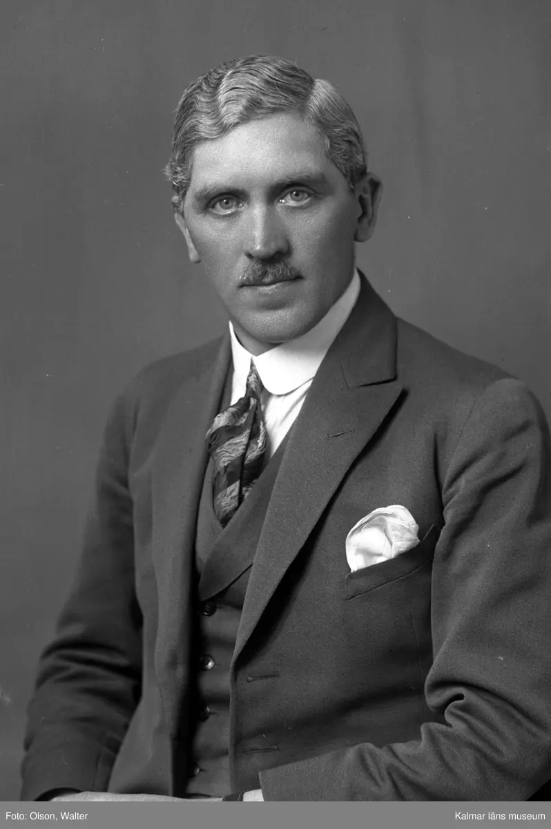 Ateljébild på en man i kavaj. Enligt Walter Olsons journal är bilden beställd av reg. Elversson ifrån Riksbanken.