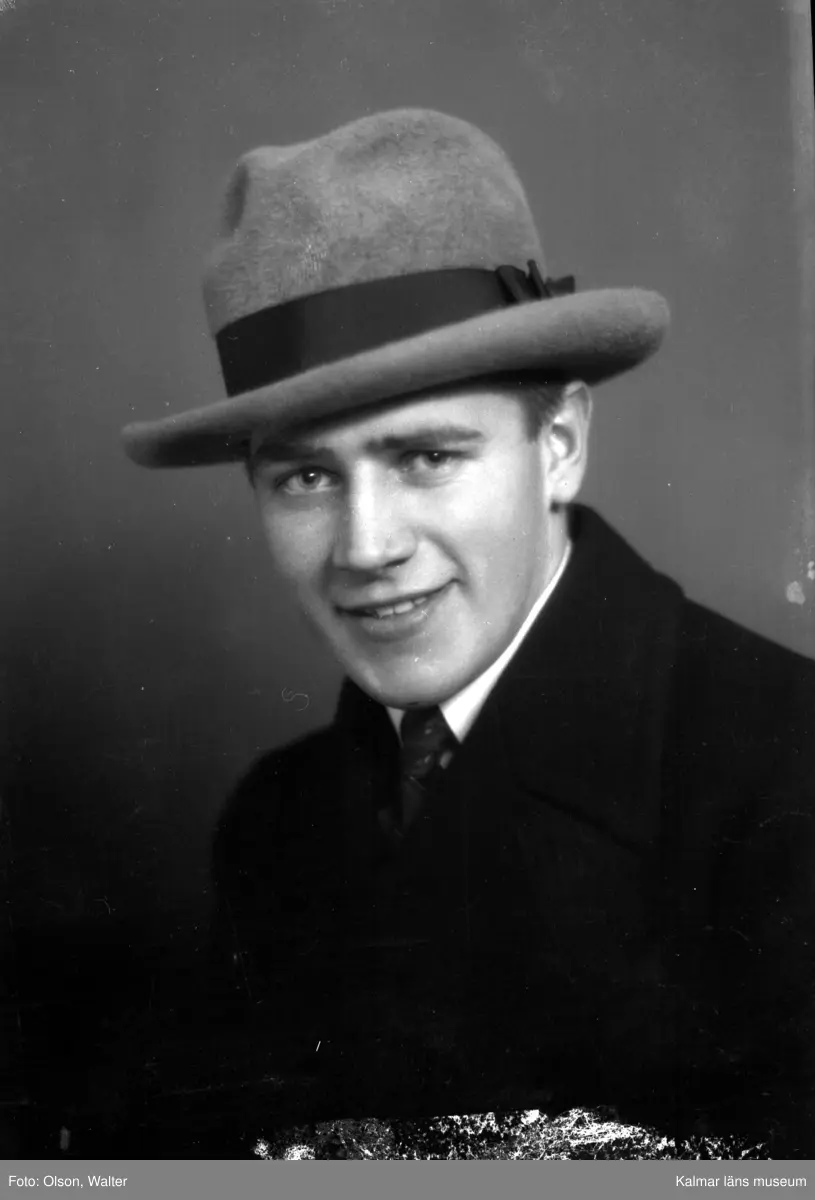 Ateljébild på en man i rock och hatt. Enligt Walter Olsons journal är bilden beställd av Sven Sohlberg.