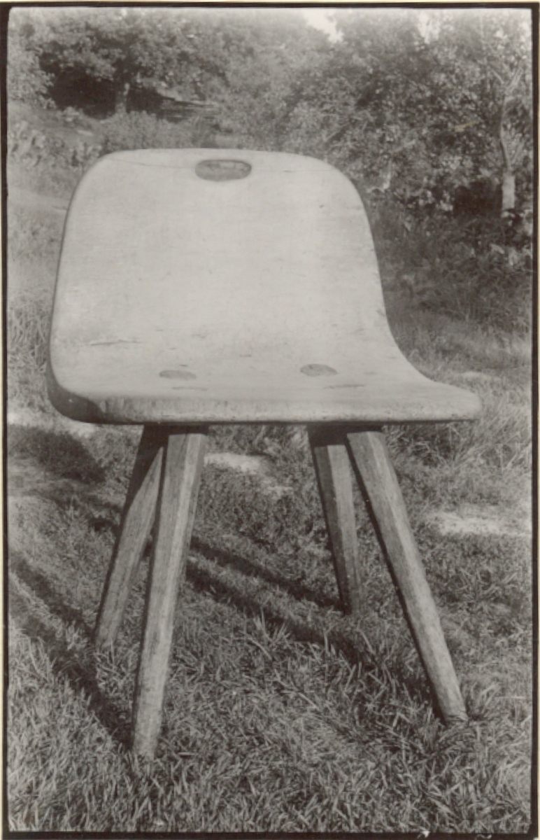 Stol, av ett björkstycke och 4 furuben. Högd 67 centimeter, bredd 48,5 centimeter, djup 35 centimeter. Tjocklek på björkstycket 1* - 5* centimeter, störst vid böjningen, i sitsen 3* centimeter. Åldern uppskattades av gårdens folk till omkring 200 år. (1937).