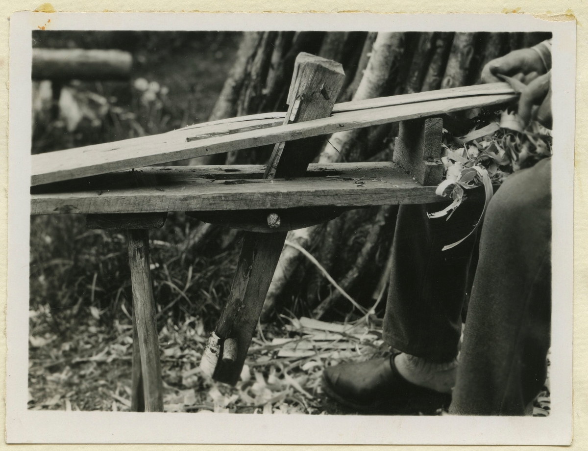 Korgmakaren Johan Ek på torpet Skogstorp utanför Orrefors tillverkar vidjor som ska användas till korgflätning.