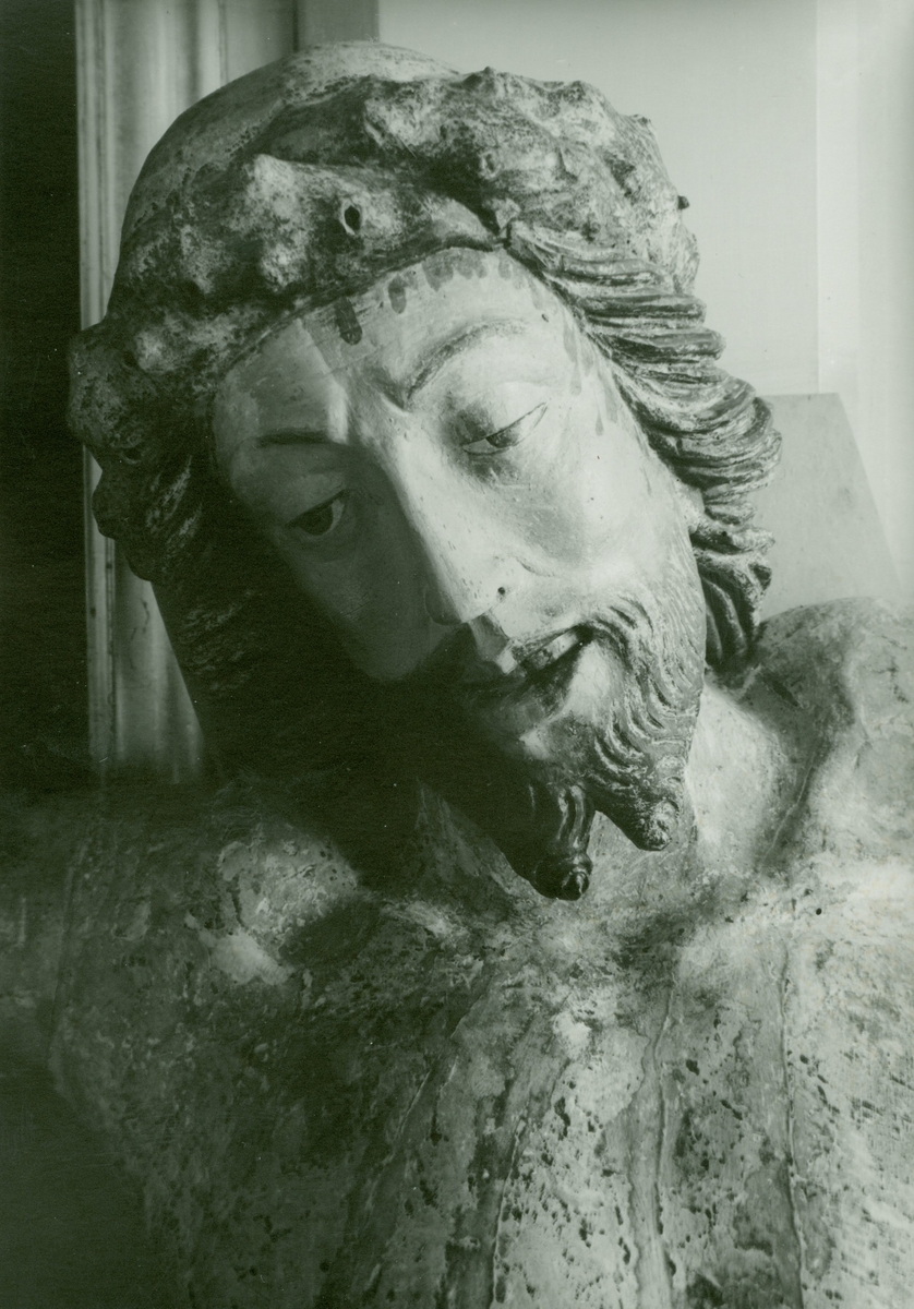 Detalj av triumkrucifix från Högby kyrka under framtagningen.
