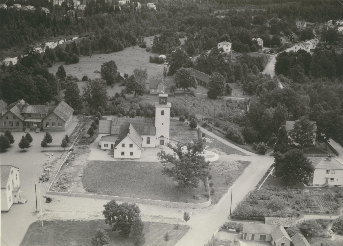 Flygfoto över Vissefjärda kyrka.