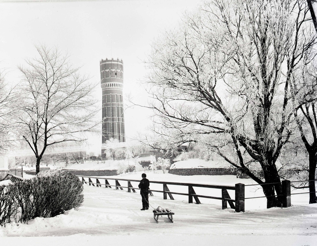 Vattentornet och Västerport i vinterskrud.