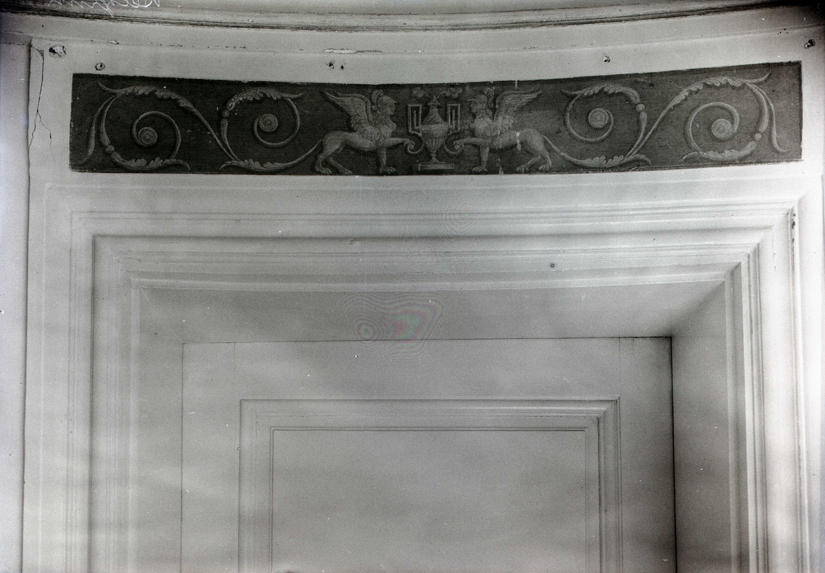 Runda matsalen på Helgerum. Träsnideri ovanför dörren.