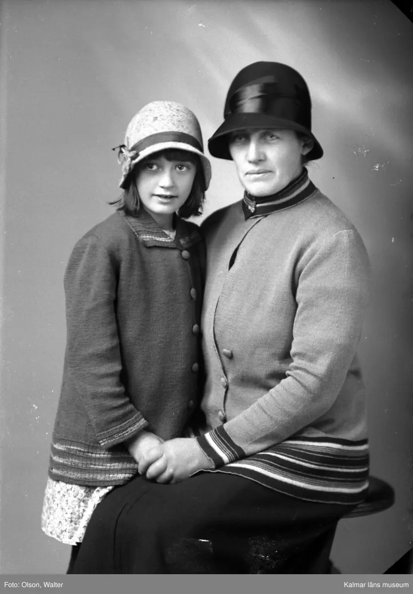Ateljébild på en flicka och en kvinna i hatt och jacka. Beställare till bilden: Fr Mina Gustavsson ifrån Kättilstorp i Bäckebo.