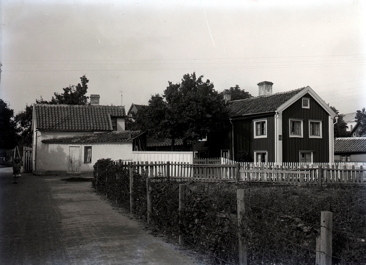 Husfasaderna mot Lilla Dammgatan / Kungsgatan vid Gullbrandssonska lyckan.