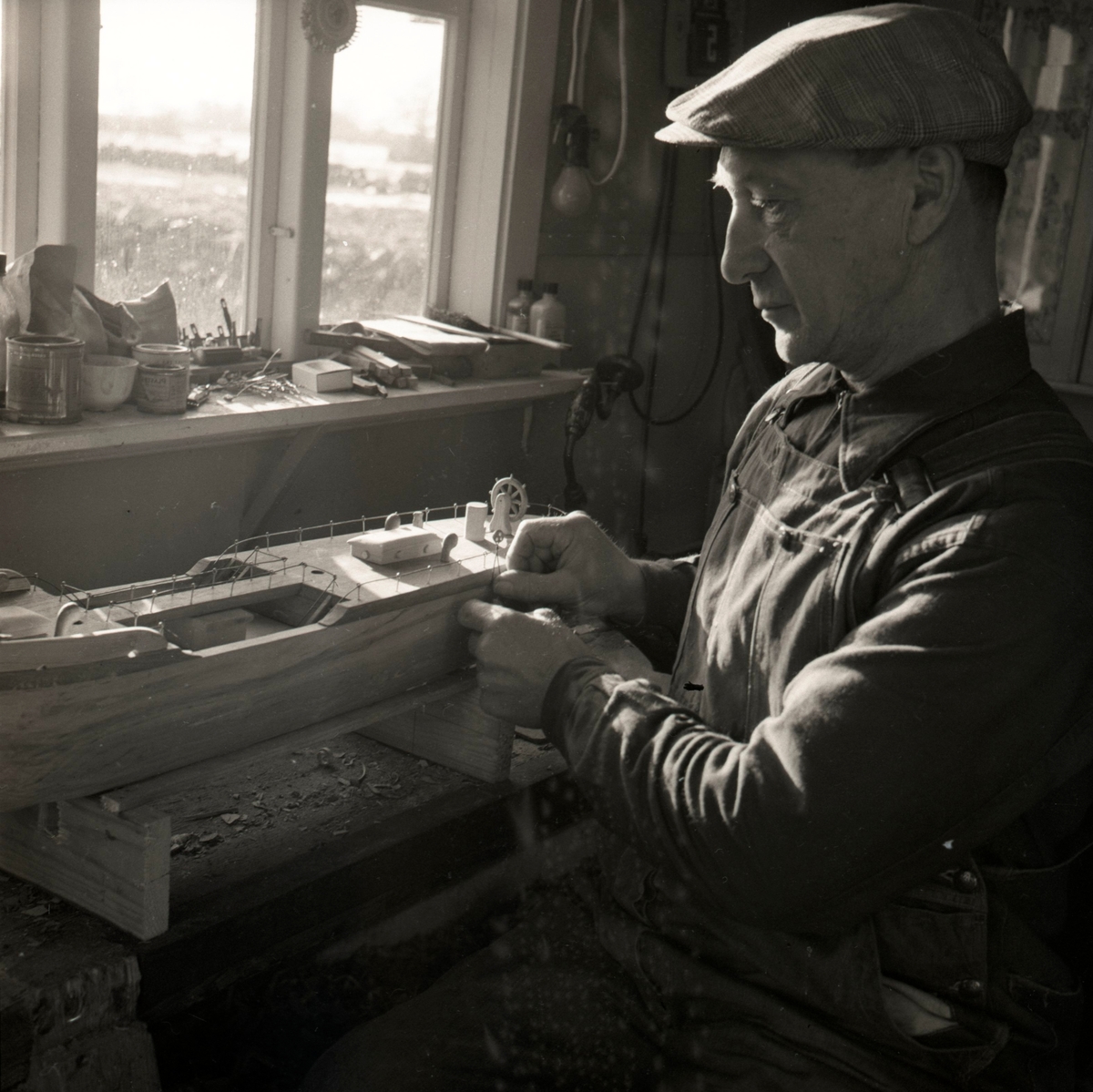 Titel: Harry Karlsson i Grönvik gör ett votivskepp till Föra kyrka.
