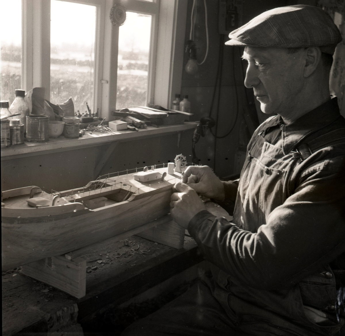 Harry Karlsson i Grönvik gör ett votivskepp till Föra kyrka.