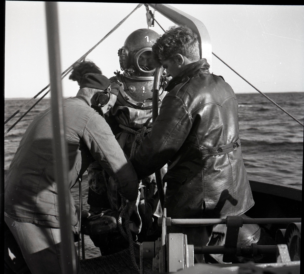 Titel: Dykare på jakt efter ett störtat flygplan.