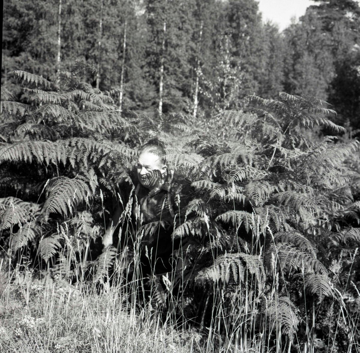 TV-Elvis gömmer sig i ormbunkar, på uppdrag av Hylands Hörna.