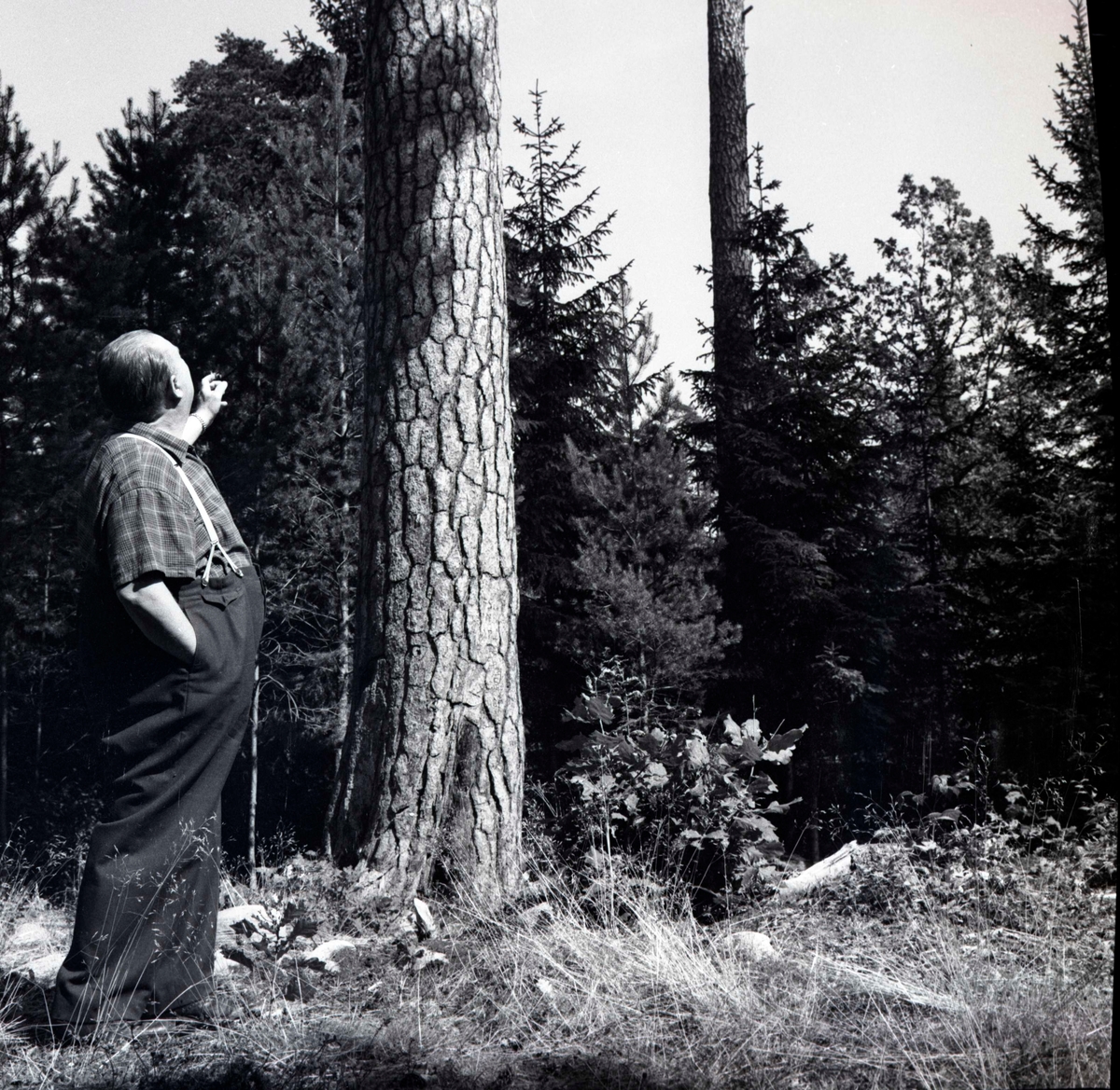 TV-Levis kollar upp mot ett träd, på uppdrag av Hylands Hörna.