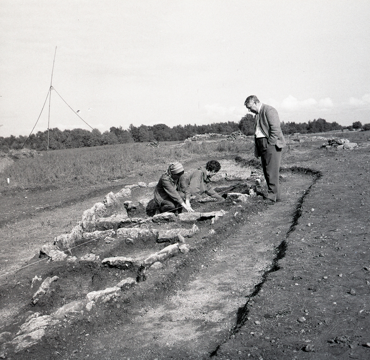 Arkeologisk utgrävning vid Hässleby av en skeppssättning. En skeppssättning (ibland ett stenskepp) är en stenkrets med den spetsovala formen av ett skepp.