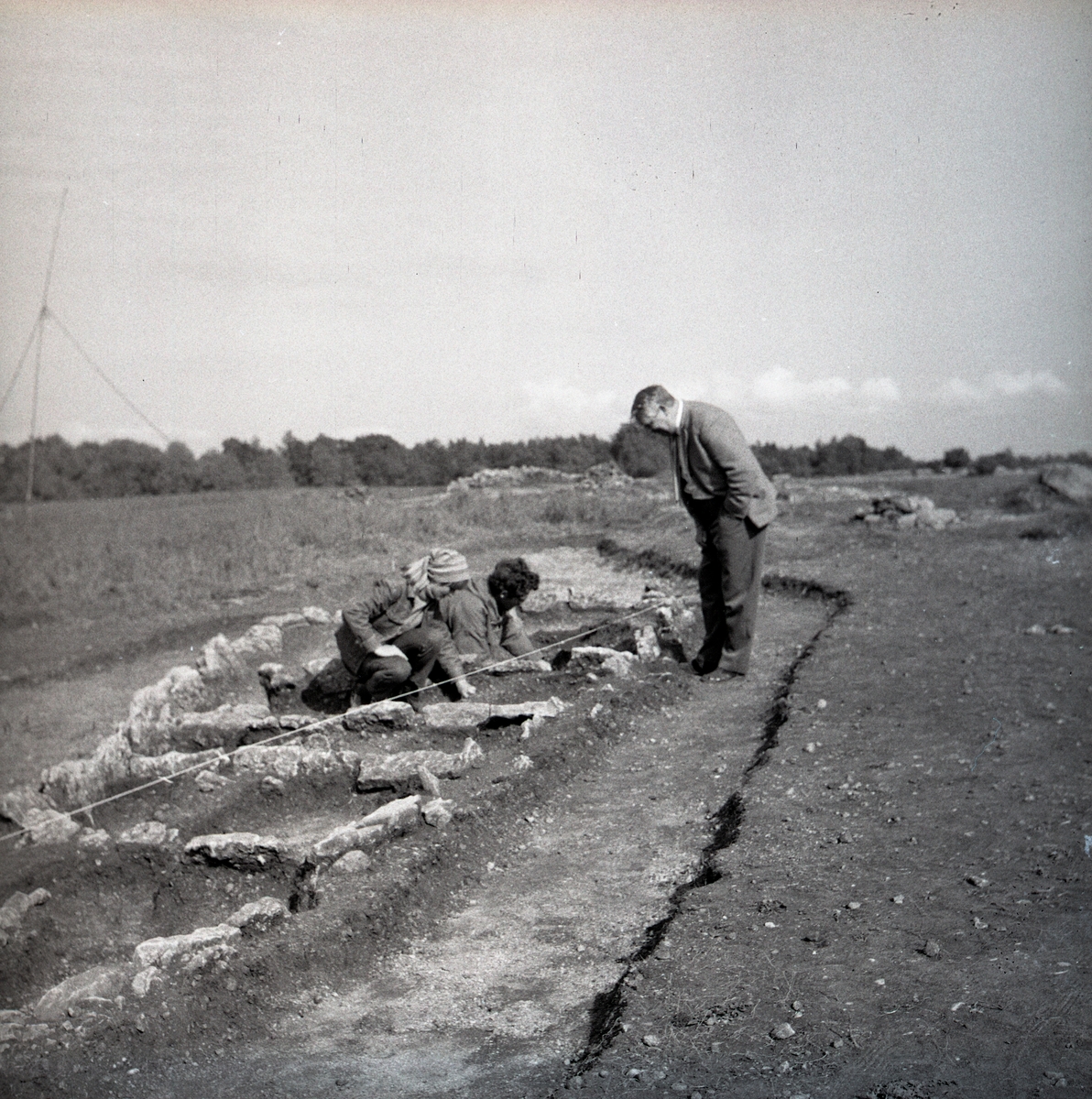 Arkeologisk utgrävning vid Hässleby av en skeppssättning. En skeppssättning (ibland ett stenskepp) är en stenkrets med den spetsovala formen av ett skepp.