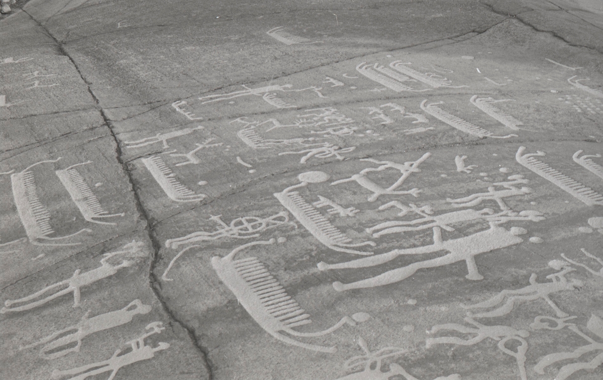 Hällristningar. Hällristningsområdet i Tanum är ett område i Tanums kommun i Bohuslän där man funnit flera berghällar med stora mängder hällristningar från bronsåldern. Runt den största av dem, Vitlyckehällen, är Vitlycke museum uppbyggt. Hällen har närmare 300 inhuggna figurer och ca 170 skålgropar. Den kanske mest berömda scenen bland alla Tanums hällristningar, "Brudparet", finns här. Bland de övriga närliggande hällarna märks Litsleby med en ca 2,3 meter lång spjutbeväpnad man, "Spjutguden", och Aspeberget med en plöjningsscen, ett antal oxar och skepp. Hällen vid Fossum ligger en bit från de övriga. Den kännetecknas av en mer sammanhållen och konstnärlig komposition. Kanske är den gjord av en enda ristare.