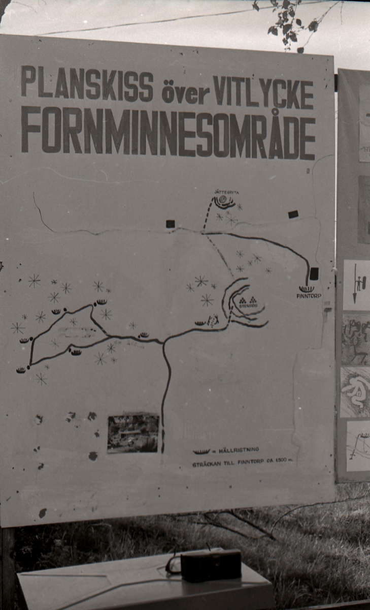 En planskiss. Hällristningsområdet i Tanum är ett område i Tanums kommun i Bohuslän där man funnit flera berghällar med stora mängder hällristningar från bronsåldern. Runt den största av dem, Vitlyckehällen, är Vitlycke museum uppbyggt. Hällen har närmare 300 inhuggna figurer och ca 170 skålgropar. Den kanske mest berömda scenen bland alla Tanums hällristningar, "Brudparet", finns här. Bland de övriga närliggande hällarna märks Litsleby med en ca 2,3 meter lång spjutbeväpnad man, "Spjutguden", och Aspeberget med en plöjningsscen, ett antal oxar och skepp. Hällen vid Fossum ligger en bit från de övriga. Den kännetecknas av en mer sammanhållen och konstnärlig komposition. Kanske är den gjord av en enda ristare.