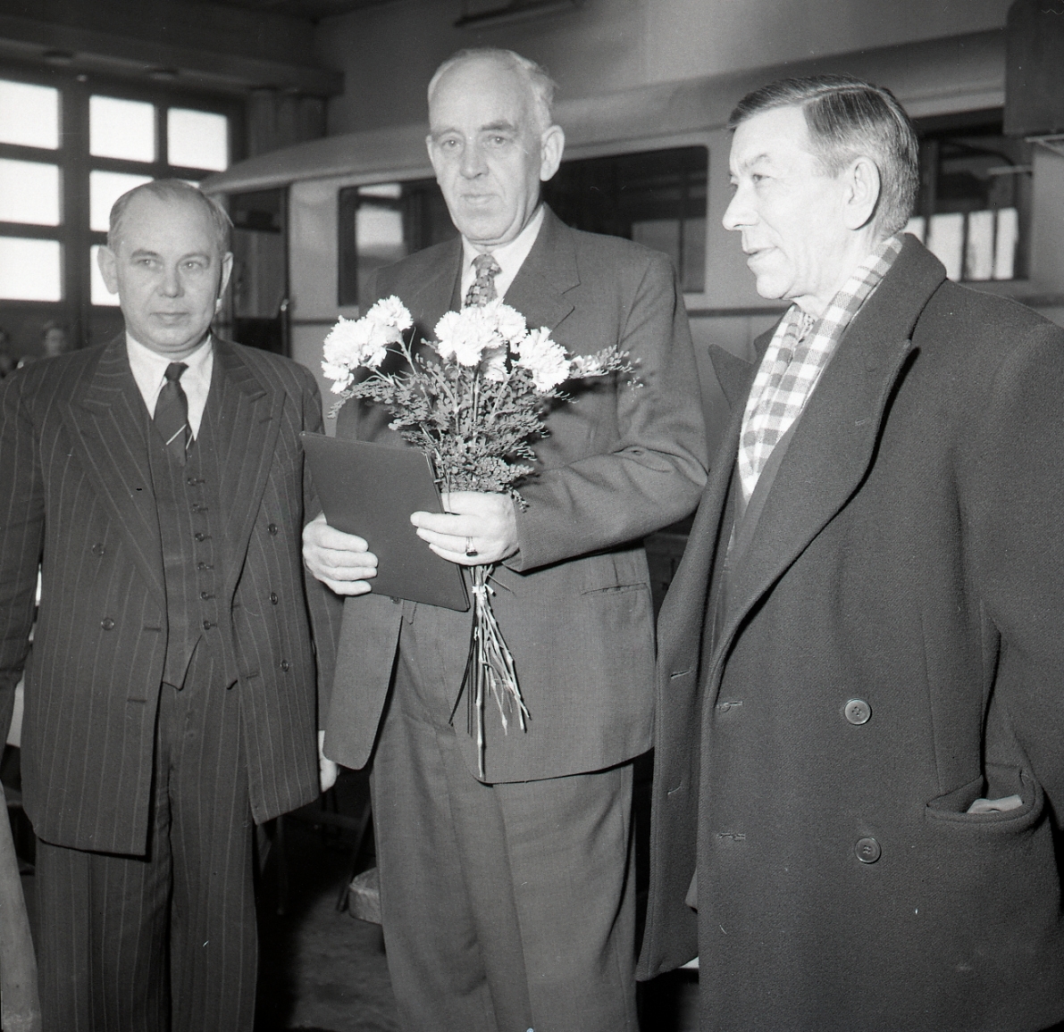 Lokförman Oscar Sandvall avgår med pension 25/11 1958.