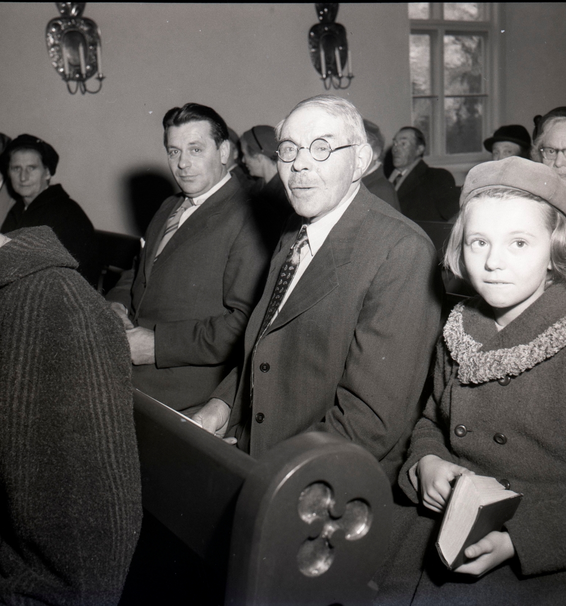 Gudstjänst i samband med att kyrkvaktmästare Gustav Svensson avgick den 1 november 1958. Pensionering.