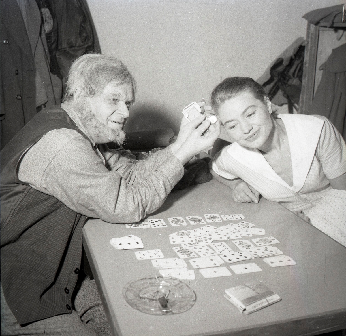 Titel: Teater, Klockmakarens dotter. Medverkande: Britt Ångström, Åke Svensson, Liljan Bäck, Gerd Peters, Ingrid Lindström 27/10 1957.
