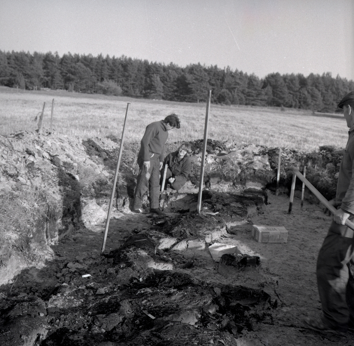 Antikvarie Ulf Erik Hagberg vid en arkeologisk undersökning i Störlinge 11/4 1964.