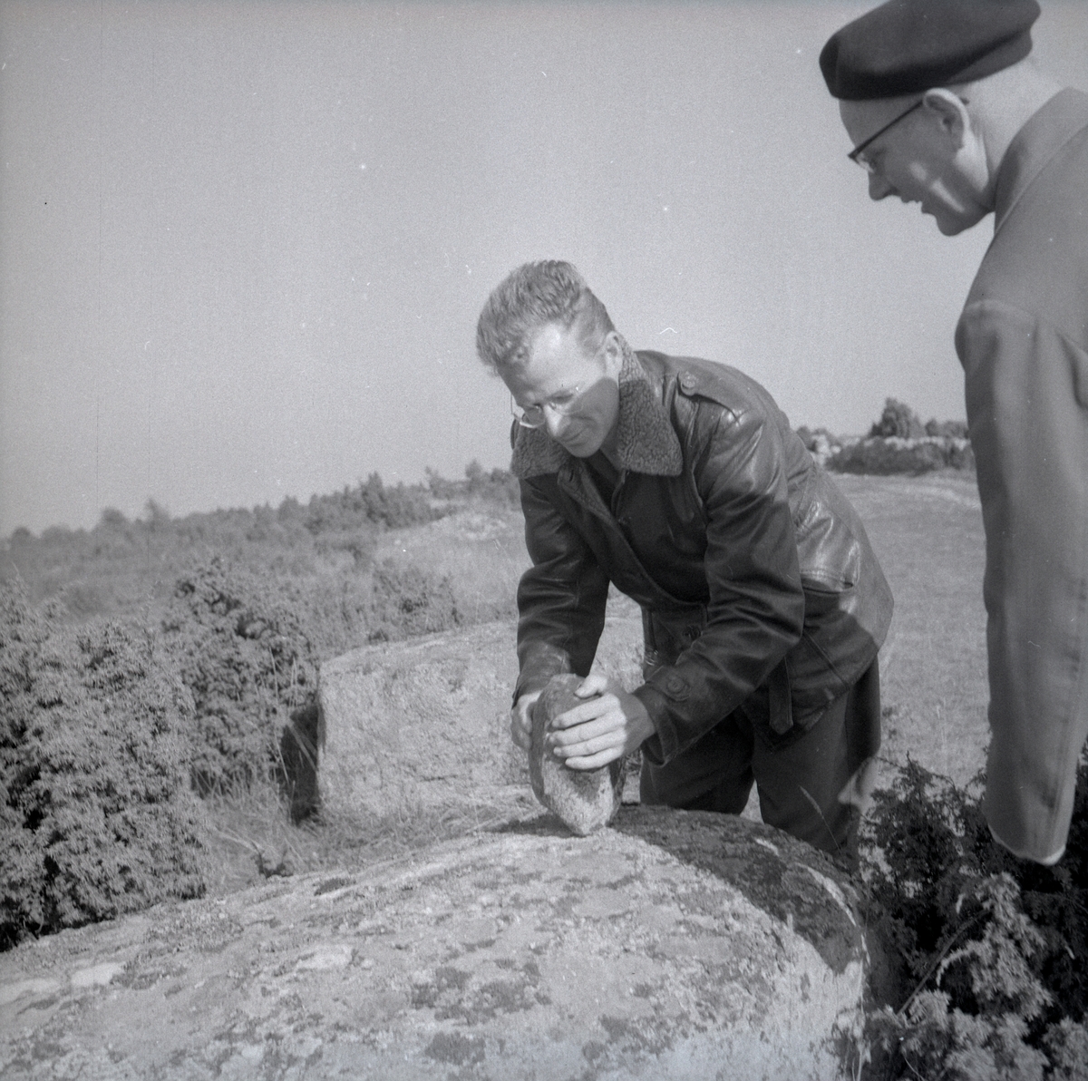 En demonstration i samband med en arkeologisk underökning vid Nybyåsen 1/10 1958.