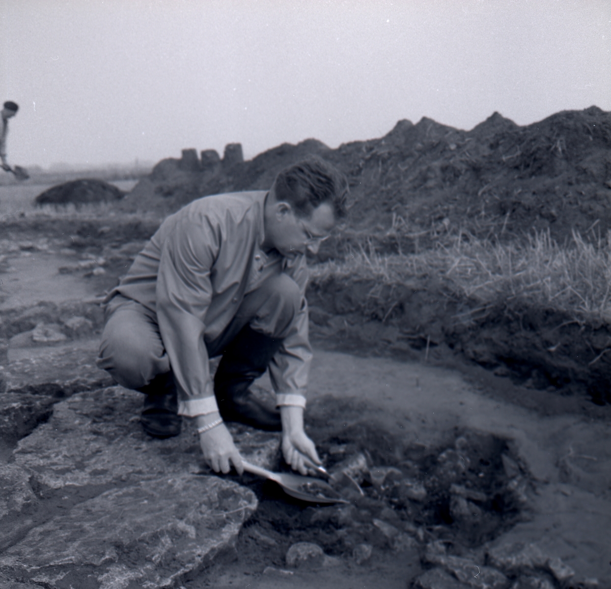 Titel: Från utgrävning i Ormöga 23/9 1963. Man hittade mycket djurbensmaterial i Ormöga och har kunnat konstatera att nötboskap har varit Ormögas viktigaste köttproducent. Jakt och fiske utgorde ett betydelsefullt inslag i befolkningens dagliga livsföring. Grönlandssäl har för första gången påträffats i förhistoriskt benmaterial från Öland.