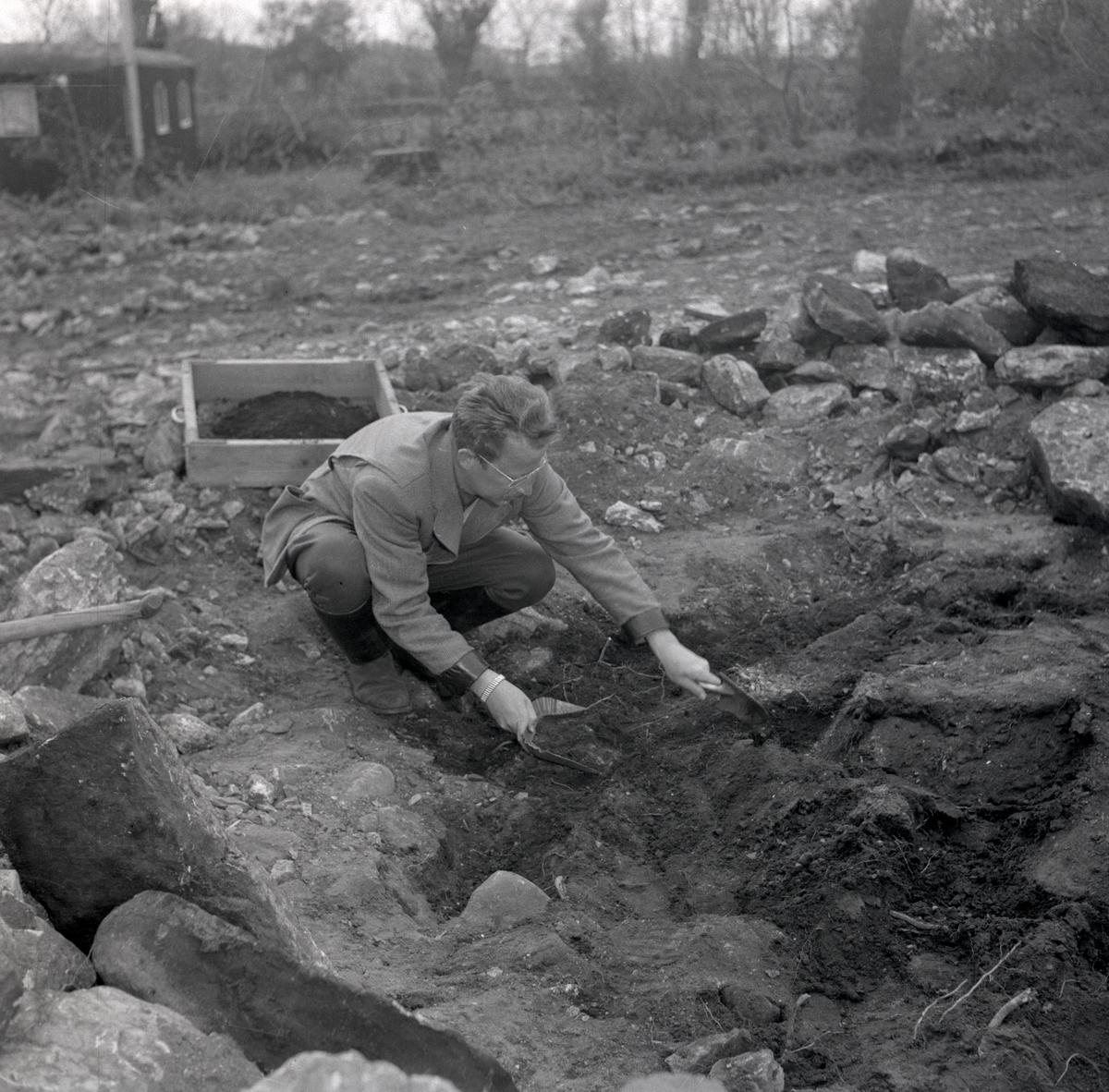 K-G Petersson utför en arkeologisk undersökning vid Klinta 1957.