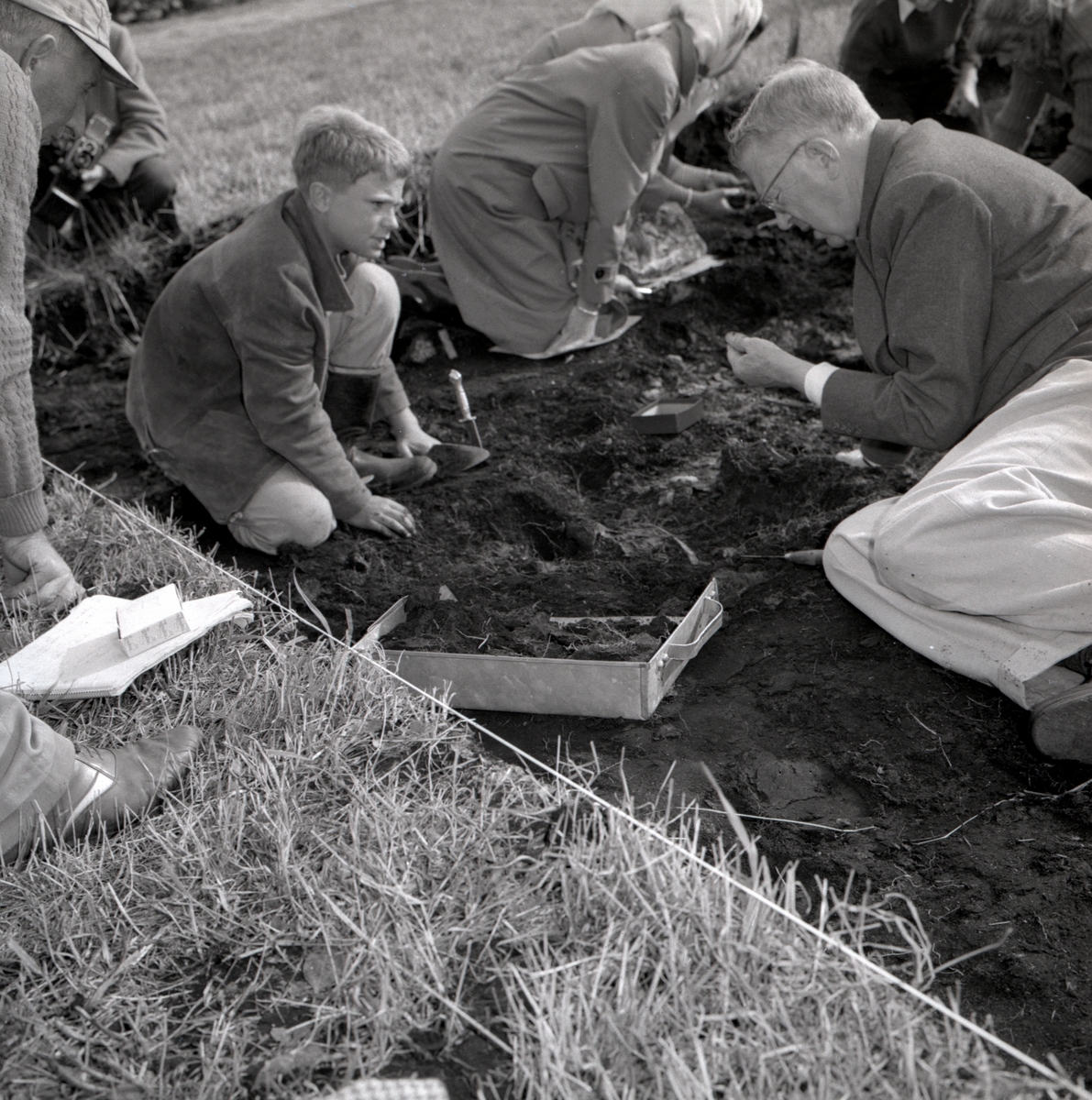 Kung Gustaf VI Adolf och kronprins Carl Gustaf vid Klinta 1957.